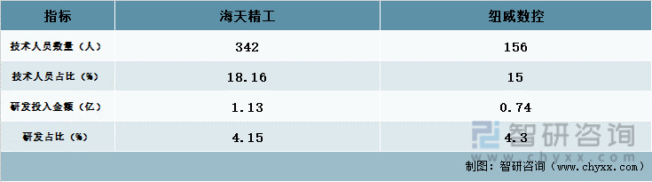从两家企业的科研情况来看,海天精工2021年共投入342名研发人员,纽威数控投入156人。海天精工的研发技术人员占比为18.16%,纽威数控为15%;而研发投入金额方面,海天精工研发投入金额为1.13亿,超过纽威数控的0.74亿,而研发占比方面纽威数控为4.3%,超过了海天精工的4.15%。