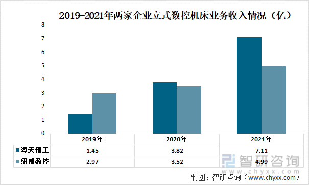2019-2021年两家企业立式数控机床业务收入情况(亿)
