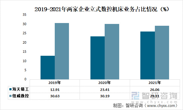 2019-2021年两家企业立式数控机床业务占比情况(%)