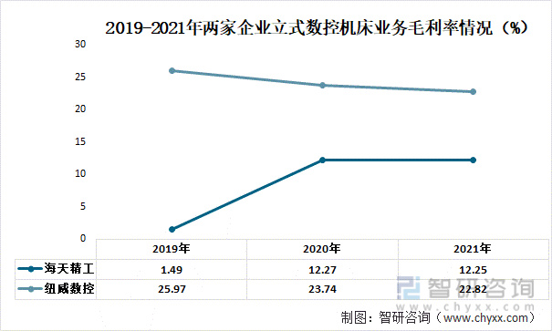 2019-2021年两家企业立式数控机床业务毛利率情况(%)