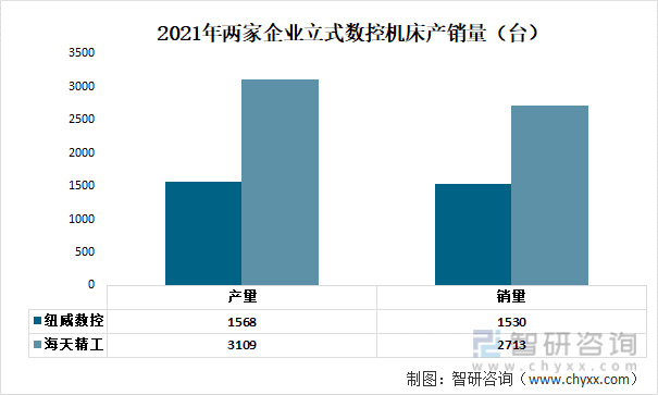 2021年两家企业立式数控机床产销量(台)
